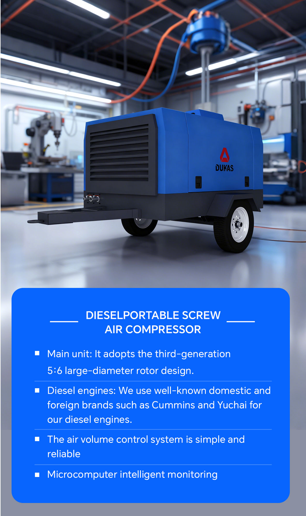 Integrated design, ready to use immediately. The generator set typically integrates the diesel engine, compressor, air tank, and cooling system into a single unit. It is pre-commissioned and tested at the factory, requiring only simple connection upon arrival at the site for immediate operation, saving installation time.