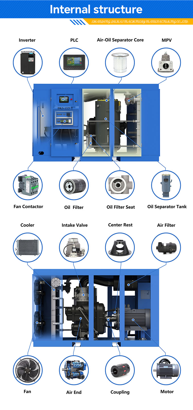 DUKAS 75KW Two Stage Screw Air Compressor PM VSD Energy Saving 40% CE