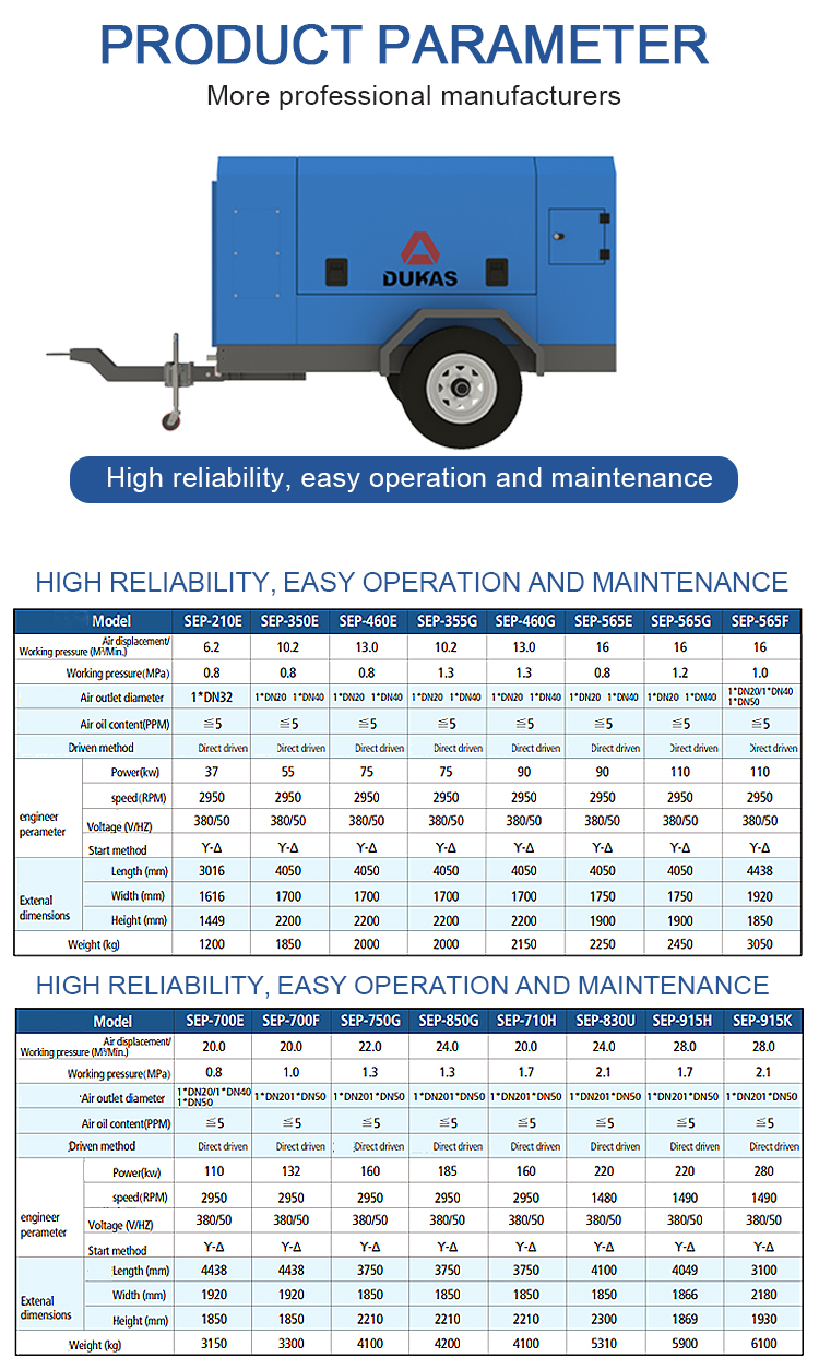 High Efficiency Mobile 75kw Electric Screw air Compressor, Strong Adaptability and Long Life