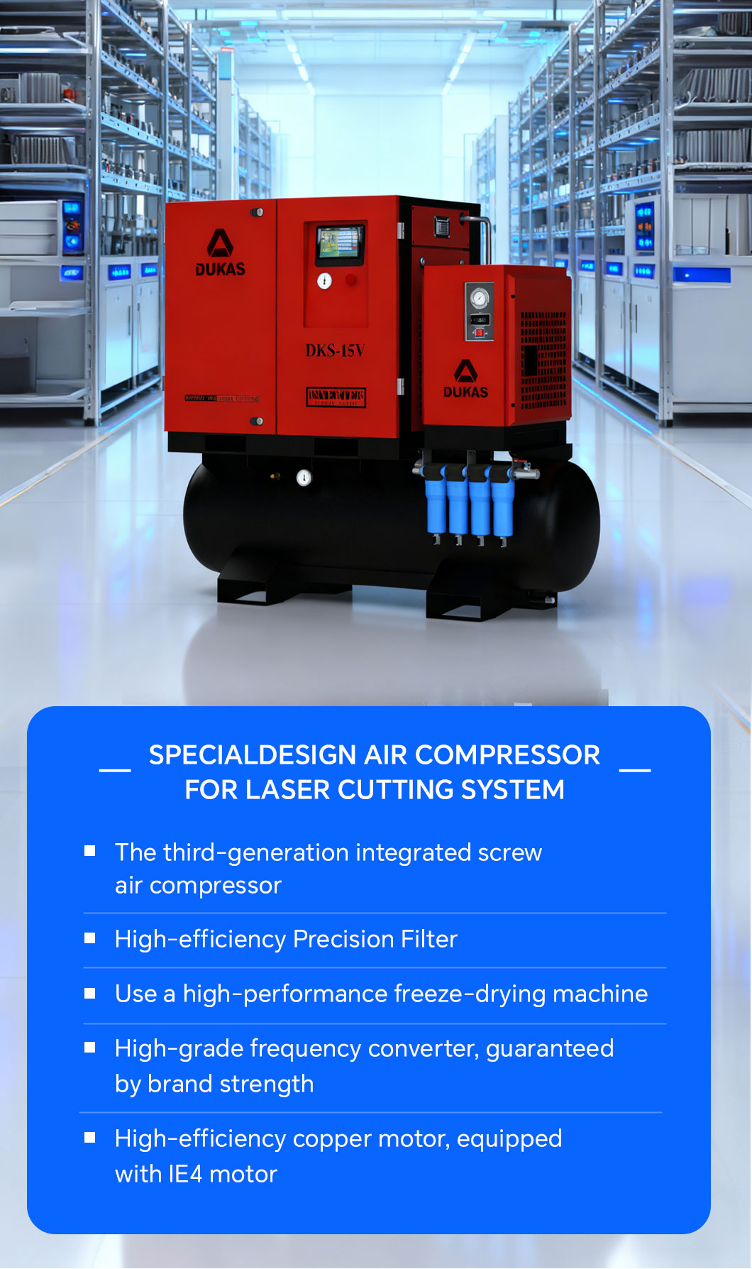 External oil filter and separator, stainless steel piping, and user-friendly layout of the drain valve allow for maintenance without disassembling the entire machine, saving time and effort in daily maintenance.
