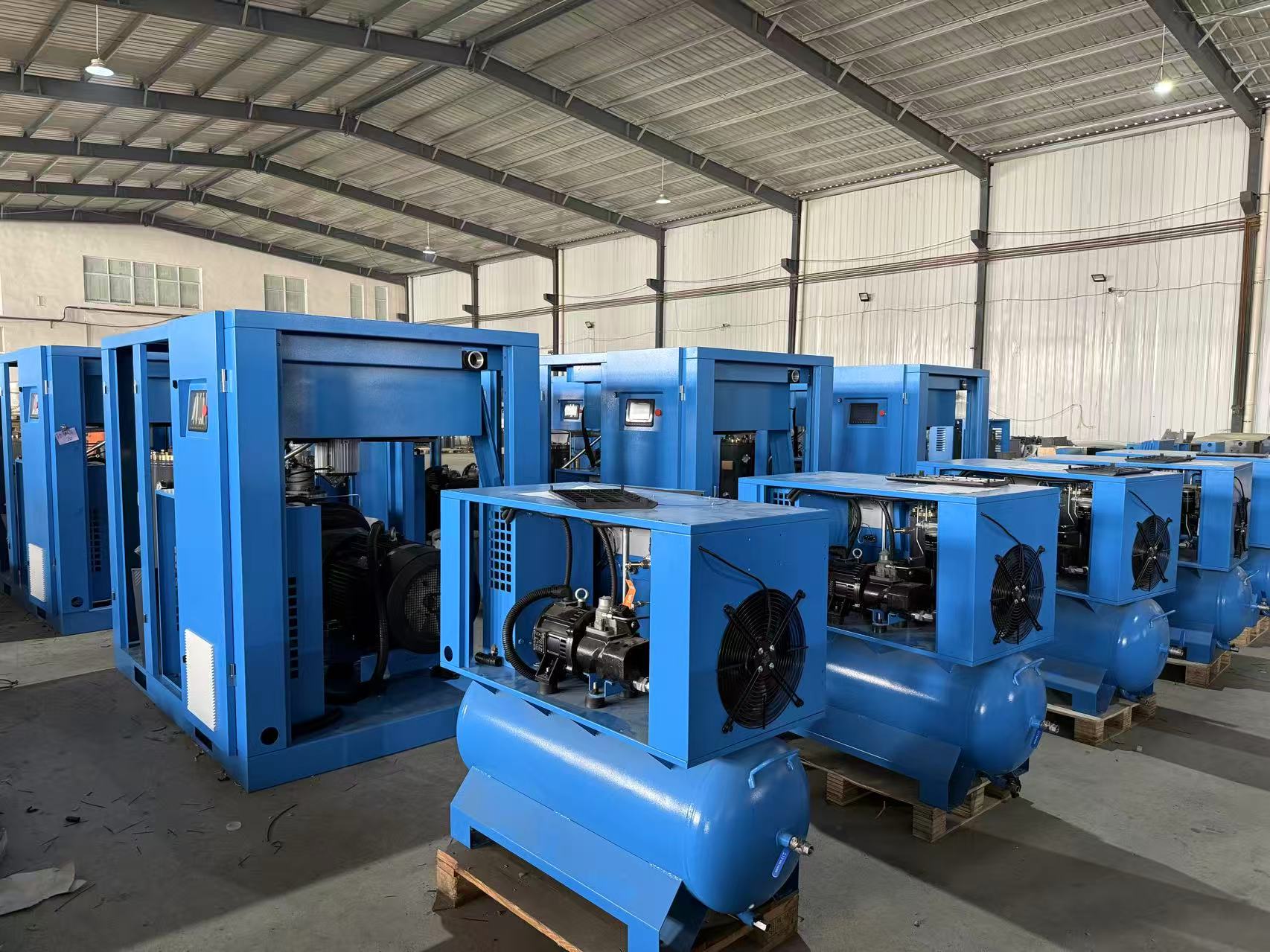 Available in 3.7kW (5HP) to 15kW (20HP), with working pressures from 0.7MPa to 1.2MPa. Perfect for laser cutting, automotive shops, pneumatic tools, and general factory use.