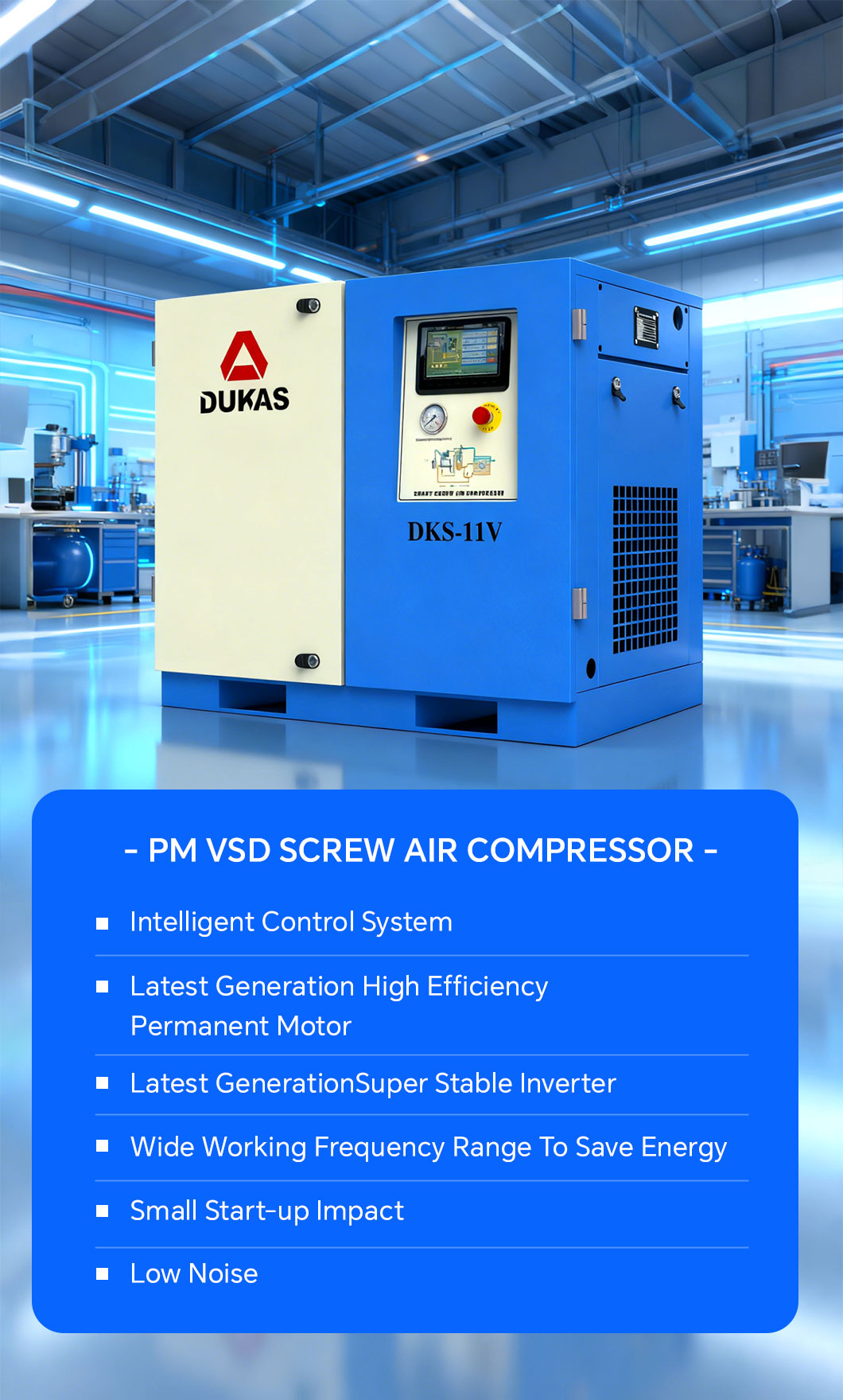 Ultra-low noise, optimized working environment: Variable frequency drive allows the unit to operate within a low to medium speed range. Combined with multiple noise reduction designs, the overall sound pressure level is ≤70dB(A), meeting the high noise control standards of modern factories.
